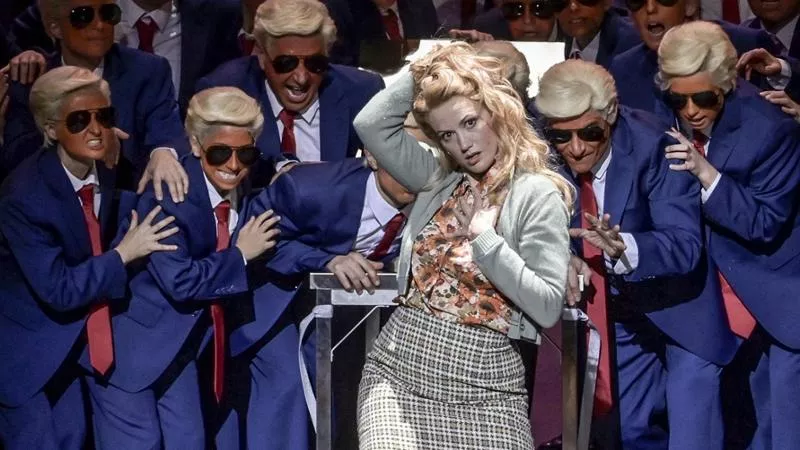 Donald Trump su un palcoscenico d’opera ancora ci mancava, anche se in effetti non ne sentivamo troppo il bisogno, dato che tracima già da ogni telegiornale e dicendo ogni volta il contrario del giorno prima. Eppure, eccolo qui: al Théâtre des Champs-Elysées di Parigi nel Robinson Crusoé, una pazzesca opéra-comique di Jacques Offenbach. A un certo punto, atto secondo, quadro secondo, appare un coro di «Guerriers, Femmes et Enfants sauvages» che circondano la bella, bionda e inglesissima Edwige, già fidanzata di Robinson venuta a cercarlo sull’isola deserta, la catturano, la drogano e decidono di sacrificarla al loro dio Saranha (non si può nemmeno dire che ai librettisti mancasse un Venerdì, perché naturalmente c’è pure lui, mezzosoprano en travesti). E qui, colpo di scena: i selvaggi sono i bravissimi artisti del coro accentus, così, senza maiuscola, e sono conciati tutti come Trump, abito blu elettrico, camicia bianca, cravatta rossa, occhiali da sole e cofana di capelli giallo stoppa.