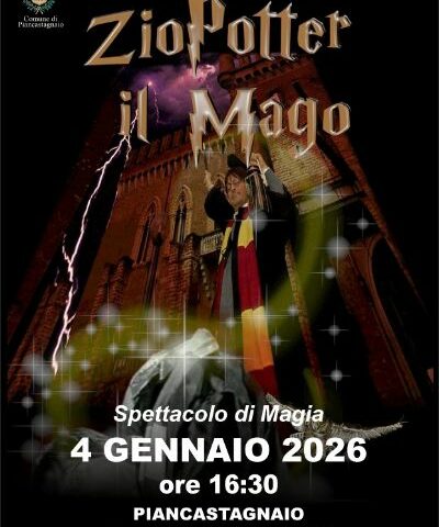 Sarà Zio Potter il protagonista del primo grande evento del nuovo anno a Piancastagnaio. L’appuntamento è fissato per domenica 4 gennaio nello spazio Dante Cappelletti, con uno spettacolo pensato in particolare per bambini, ragazzi e famiglie.