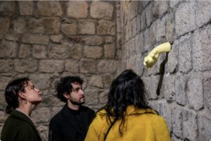 Banchelli porta nella Rocca quella sua pratica di prelievo e restituzione del quotidiano, dove gli oggetti smettono di essere neutri e tornano a pesare. Carone lavora la materia come se la scultura fosse ancora in lotta con se stessa, con la propria volontà di forma. Rä di Martino, la più nota del gruppo sul piano internazionale, costruisce situazioni in cui l’immagine e il racconto si guardano senza riconoscersi, producendo una forma di straniamento che non è fredda ma febbricitante. Siedlecki introduce la dimensione del corpo e del suono in senso stretto, il mormorio come frequenza fisica oltre che metafora.